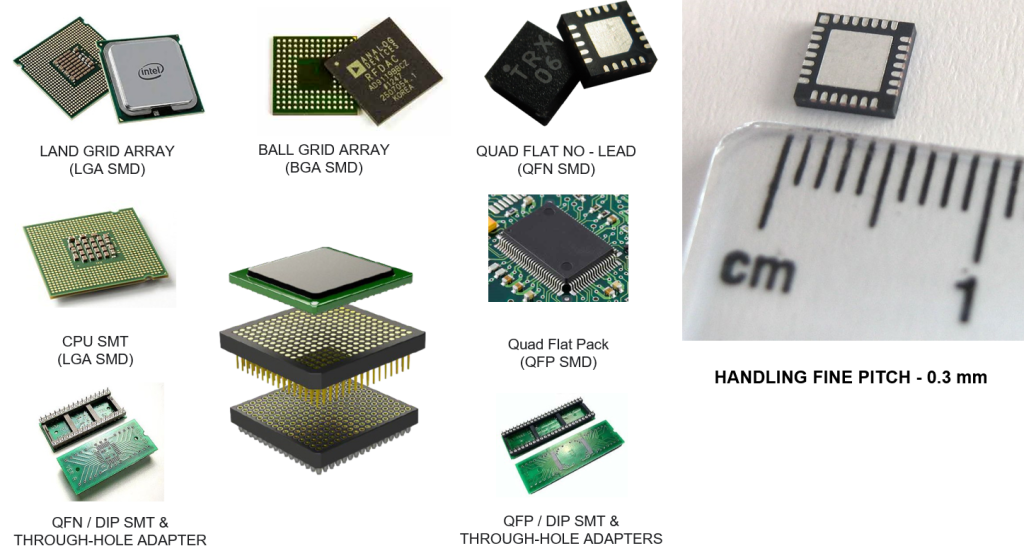 • Fine Pitch- 0.5 mm QFPs, BGAs, Connectors, LGAs, QFNs
